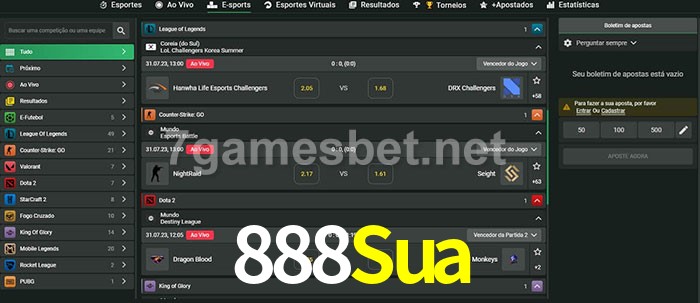 A aposta 888Sua oferece aos jogadores a experiência mais conveniente de apostas em eSports!